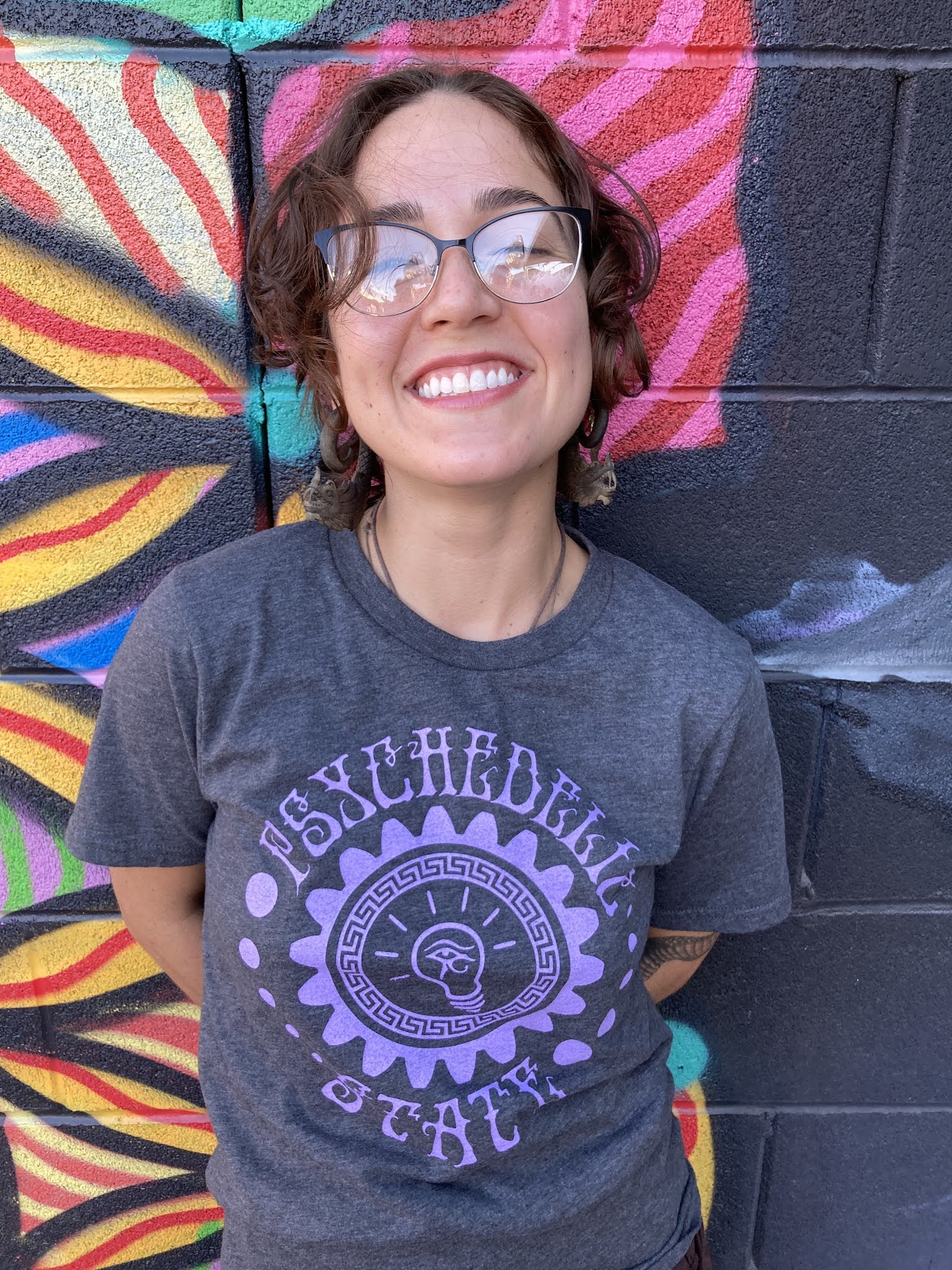 Next up, is the new Ancient Astronaut Tee. Our new design depicts the famous Tassili n'Ajjer cave art, found in the Sahara desert, N Africa. The Tassili Mushroom Figure is a late Neolithic depiction of a bee-headed Shaman possibly partaking in entheogenic ceremony. The figure is often cited as being the oldest known evidence of ritualistic mushroom use in prehistory. Same as above, as far as method materials.